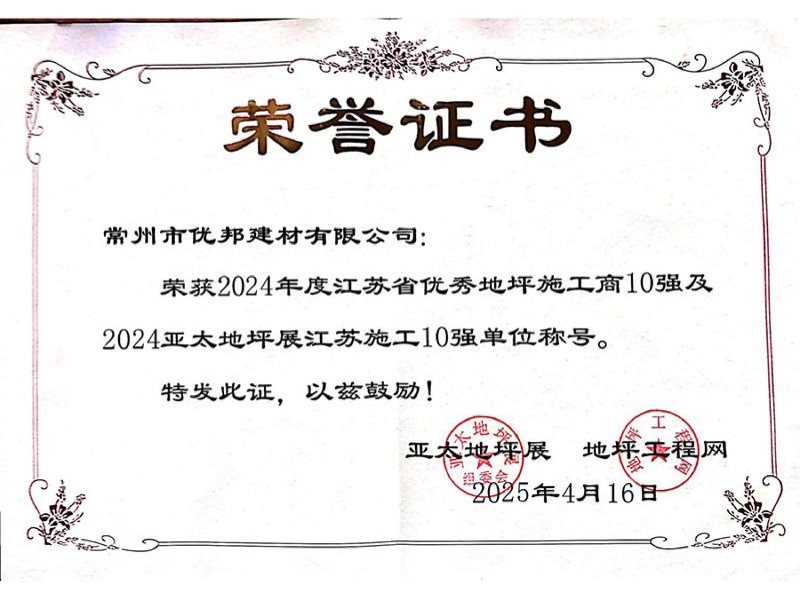优邦建材 资质荣誉